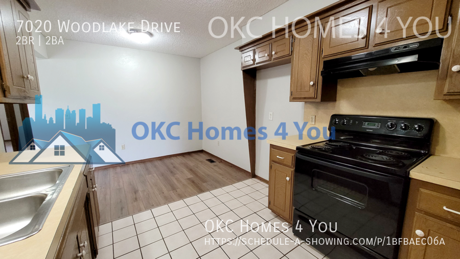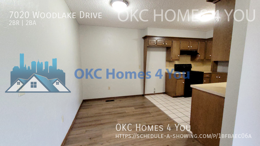 Just north of NW 63rd St. and east of Rockwell. This 2 bed, 2 bath duplex has new flooring and fresh new paint. It's located near all the shopping and dining on NW Expressway. The kitchen features tile floors, range, dishwasher, and disposal. Both bedrooms have walk-in closets. One bedroom has an en suite bathroom with a beautiful, tile shower. The second bathroom can be accessed from the hall or the second bedroom. The home offers a 1 car attached garage with opener. Washer and dryer hookups are in the garage. This is total electric unit. No gas bill!
