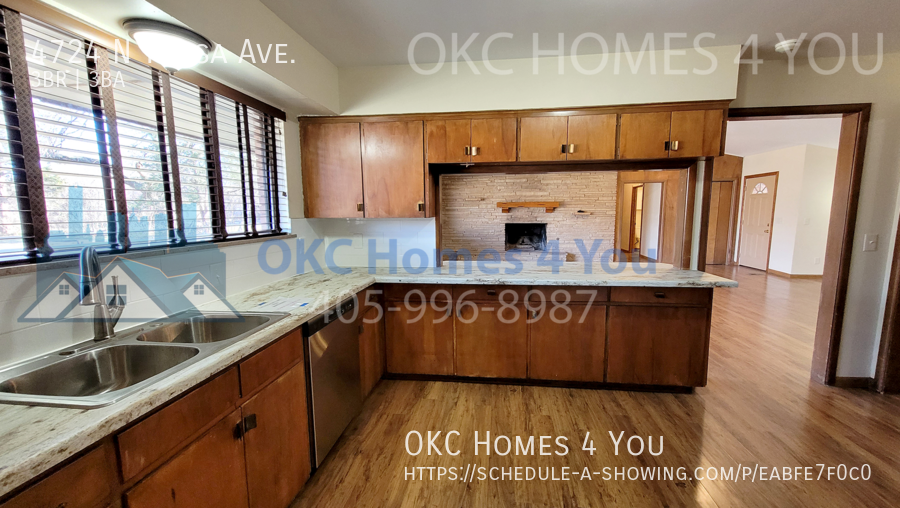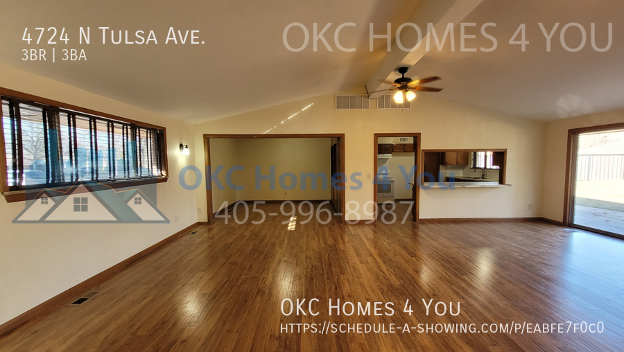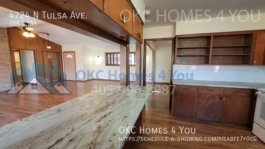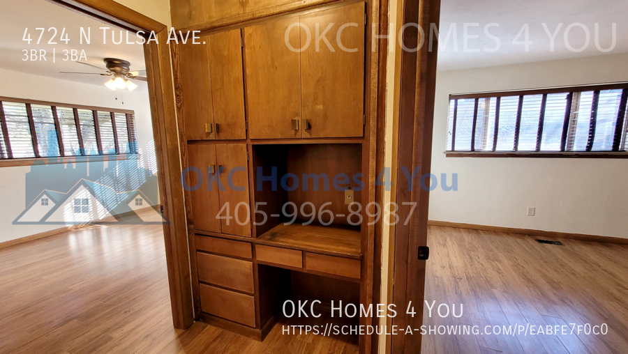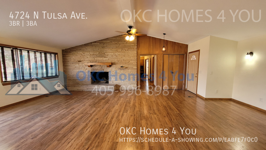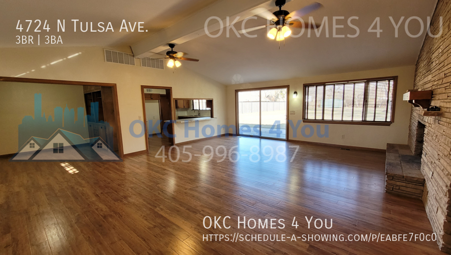 Welcome to this spacious mid-century modern home in the desirable Bush Hills 4th Addition neighborhood of Oklahoma City! This 3 bedroom, 3 bathroom house features a gas fireplace, solid surface flooring throughout, and an updated master bathroom. The large living room boasts a vaulted ceiling and two ceiling fans, perfect for relaxing or entertaining guests. Enjoy meals in the separate dining room or take advantage of the large fenced back yard for outdoor gatherings. With a covered circle driveway and a large storage building, this home has everything you need for comfortable living. Don't miss out on this unique mid-century home!